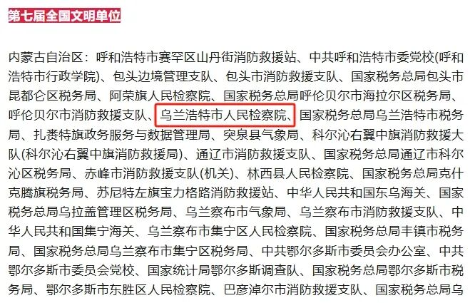 多年来,乌兰浩特市检察院将文明创建与检察职能深度融合,在司法办案中传递人文关怀,于社会治理中播撒文明种子,以法治力量护航民生福祉,用文明之光浸润城市肌理,成为精神文明建设与检察事业同频共进的生动范本。未来,乌兰浩特市检察院将以获评全国文明单位为契机,持续以文明之力铸检察之魂,在守护公平正义的征程中厚植文明根基,为检察事业高质量发展注入澎湃的精神动能,续写法治与文明交相辉映的时代新篇。