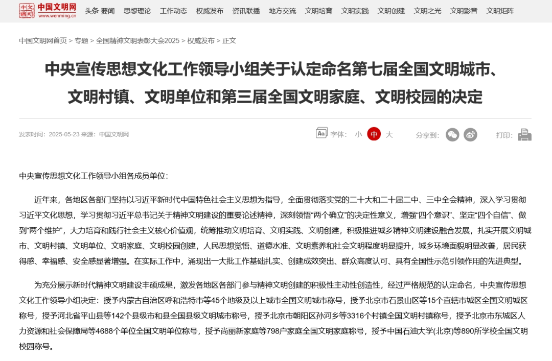 5月23日,全国精神文明建设表彰大会在北京召开。会议表彰了第七届全国文明城市、文明村镇、文明单位和第三届全国文明家庭、文明校园。乌兰浩特市检察院荣获“第七届全国文明单位”称号。