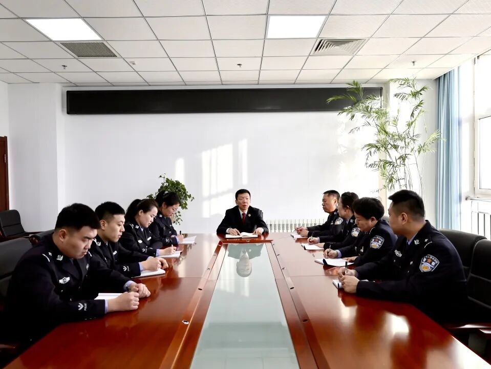 宣誓仪式结束后,乌兰浩特市检察院党组成员、副检察长徐明与全体司法警察召开主题座谈会。与会人员共同重温了习近平总书记在中国人民警察警旗授旗仪式上的重要训词精神。警辅人员结合押解看管、安全警戒、应急处突等日常工作实际,畅谈履职感悟、分享工作心得,并围绕警务队伍建设、实战能力提升等方面提出意见建议。徐明认真倾听警辅人员发言,对司法警察大队一年来的工作成效予以肯定,勉励全体人员牢记初心使命,锤炼过硬本领,以更严标准、更实作风履行检察警务职责。