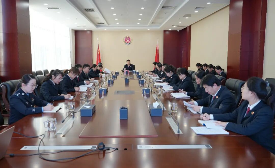 1月23日,乌兰浩特市检察院召开2025年度民主生活会前集中学习研讨,进一步统一思想、深化认识,为开好民主生活会筑牢思想根基。会议由乌兰浩特市检察院党组书记、检察长于朝华主持,班子成员、检委会专职委员、部门正副职、员额检察官参加会议。