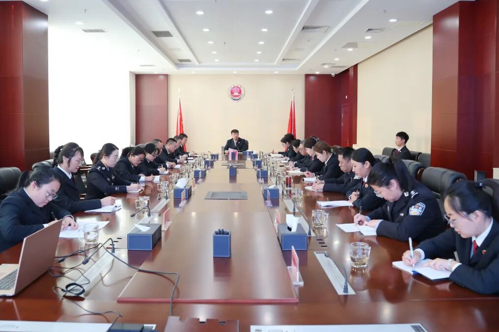 12月19日,乌兰浩特市检察院召开党组理论学习中心组(扩大)学习会议,院党组书记、检察长于朝华主持会议并讲话,院党组成员、专职委员、部门正副职、员额检察官参加会议。